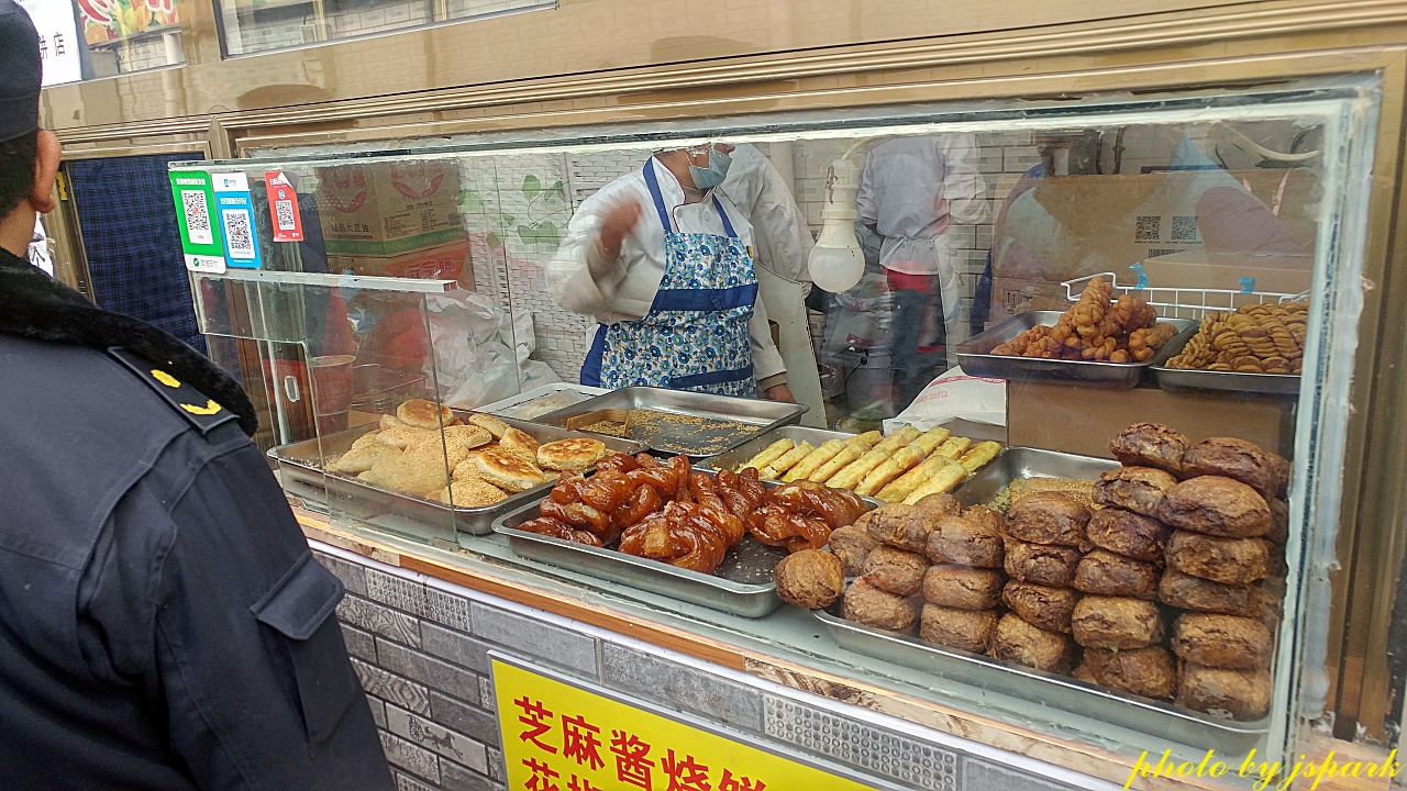 후통 가는 길에 동네 시장을 발견한다. 점심때도 되었고 해서 들어가 본다. 역시나 시장에는 먹거리가 많다. 사람들이 줄서 있는 가게에서 나도 줄을 서서 먹거리를 샀다. 큼직한 닭다리 튀김이 세 개에 10위안이었고, 호떡 같이 생긴 빵을 이것저것 대 여섯 개 샀는데도 4.5위안이었다. 우리 돈 2천 5백원 정도.