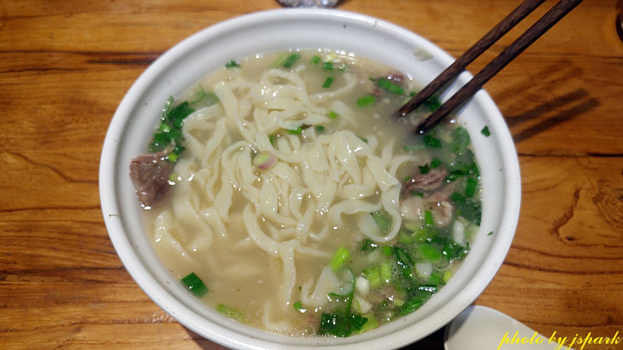 들어가서 먹어보는데 별 맛은 없다. 양고기를 팔팔 끓인 육수에 야채를 송송 썰어 넣고 국수를 말았다. 특별한 향을 넣거나 맛을 내지 않은 그냥 담백한 맛인데 양고기가 나와 안 맞나 보다. 고수 때문일지도 모른다. 국수를 주문하면서 고수 빼달라는 말을 잊었다. 웬만한 것은 잘 먹는데도 고수만은 시간이 흘러도 영 익숙해지지 않는다.