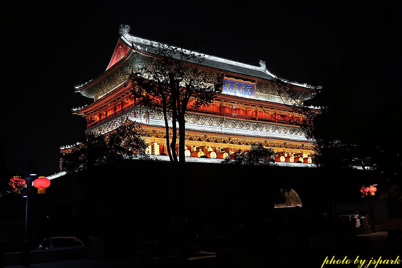 시안의 밤은 사람이 없고 건물만 있다.