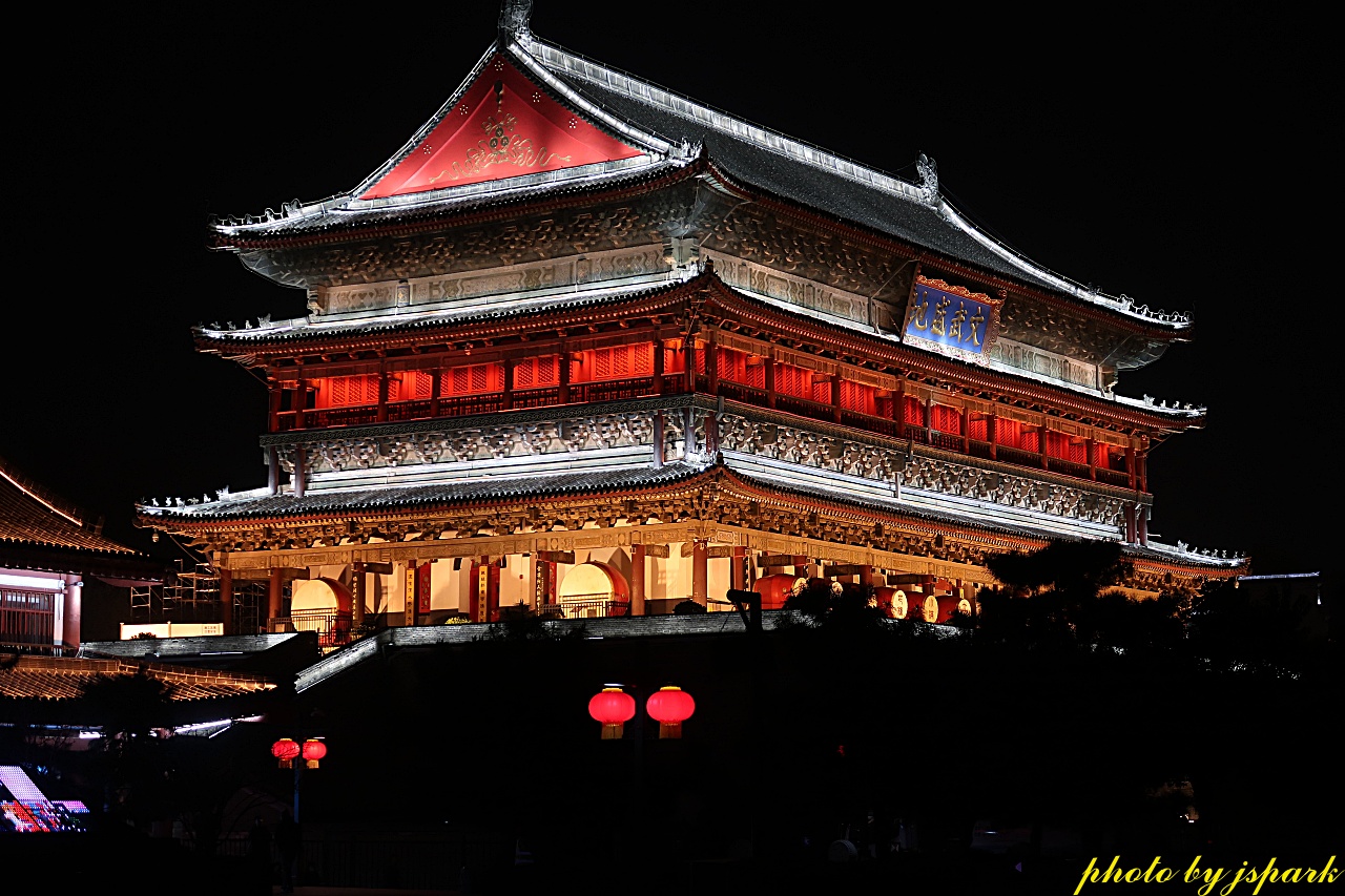 저녁의 시안은 알록달록 조명에 맞은 건물들로 더 화려하다.