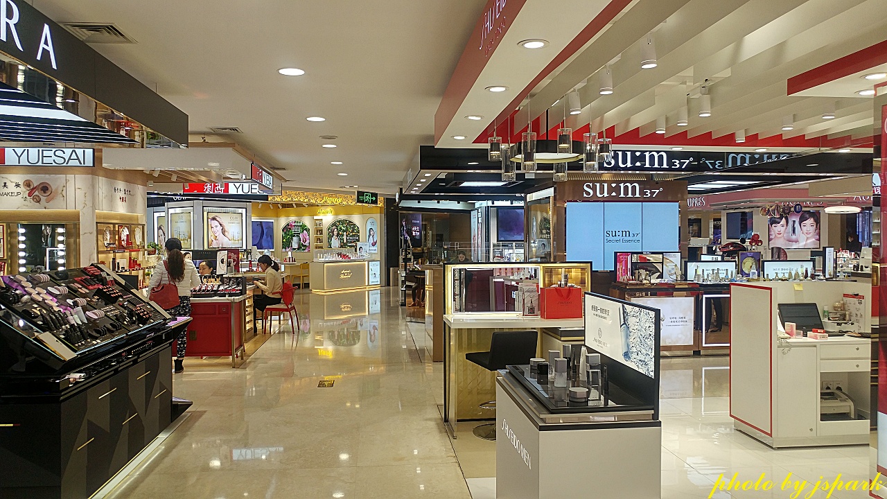 의류에서는 스포츠 의류인 코오롱이 구석이기는 하지만 입점해 있다. 베이직(Basic)도 있다. 이랜드 브랜드로 중국에서 한때 잘 나가던 브랜드다. 한국 브랜드들이 가장 많이 입점해 있는 곳은 역시 화장품 코너. 라네즈, 헤라, 설화수, 숨, IOPE, 마몽드 등이 있다. 서구 브랜드들과 아시아 브랜드들의 매장이 나뉘어서 있다. 아무래도 서구 브랜드들이 메이저 일 터인데 설화수는 아시아 브랜드들이 있는 곳이 아니라 서구 브랜드들 사이에 매장이 있다. 매장의 위치로만 본다면 설화수가 중국 내 한국 화장품 브랜드들 중에서 가장 브랜드 평판이 높아 보인다.