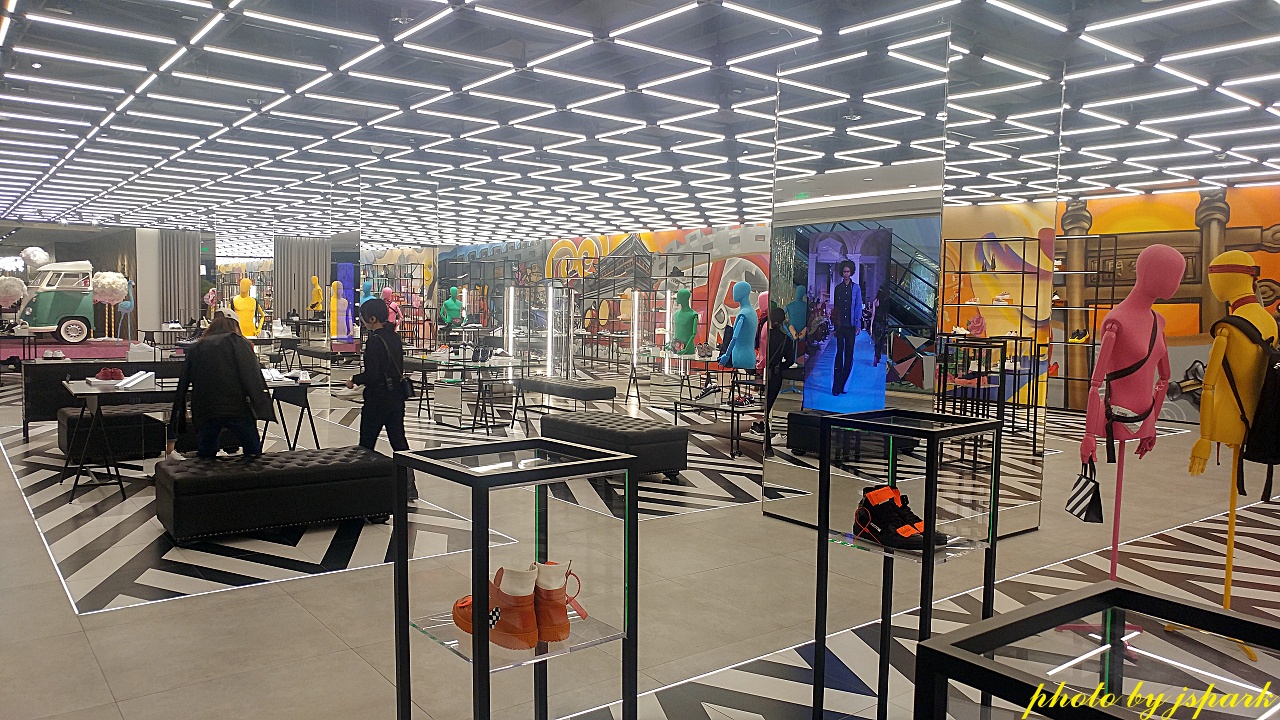 시안 남문을 등지고 오른쪽에 왕푸징 백화점(王府井百貨)이 있는데 입점 브랜드로만 보면 중급 백화점이다. 그런데 매장의 인테리어가 매우 독특하다. 브랜드별이 아니라 층별로 독특한 인테리어를 보여준다. 백화점의 일반적인 디스플레이가 아니라 층 전체를 하나의 전시관처럼 디스플레이하고 있다. 특색 있어서 사진을 좀 찍다가 제지를 당했다.